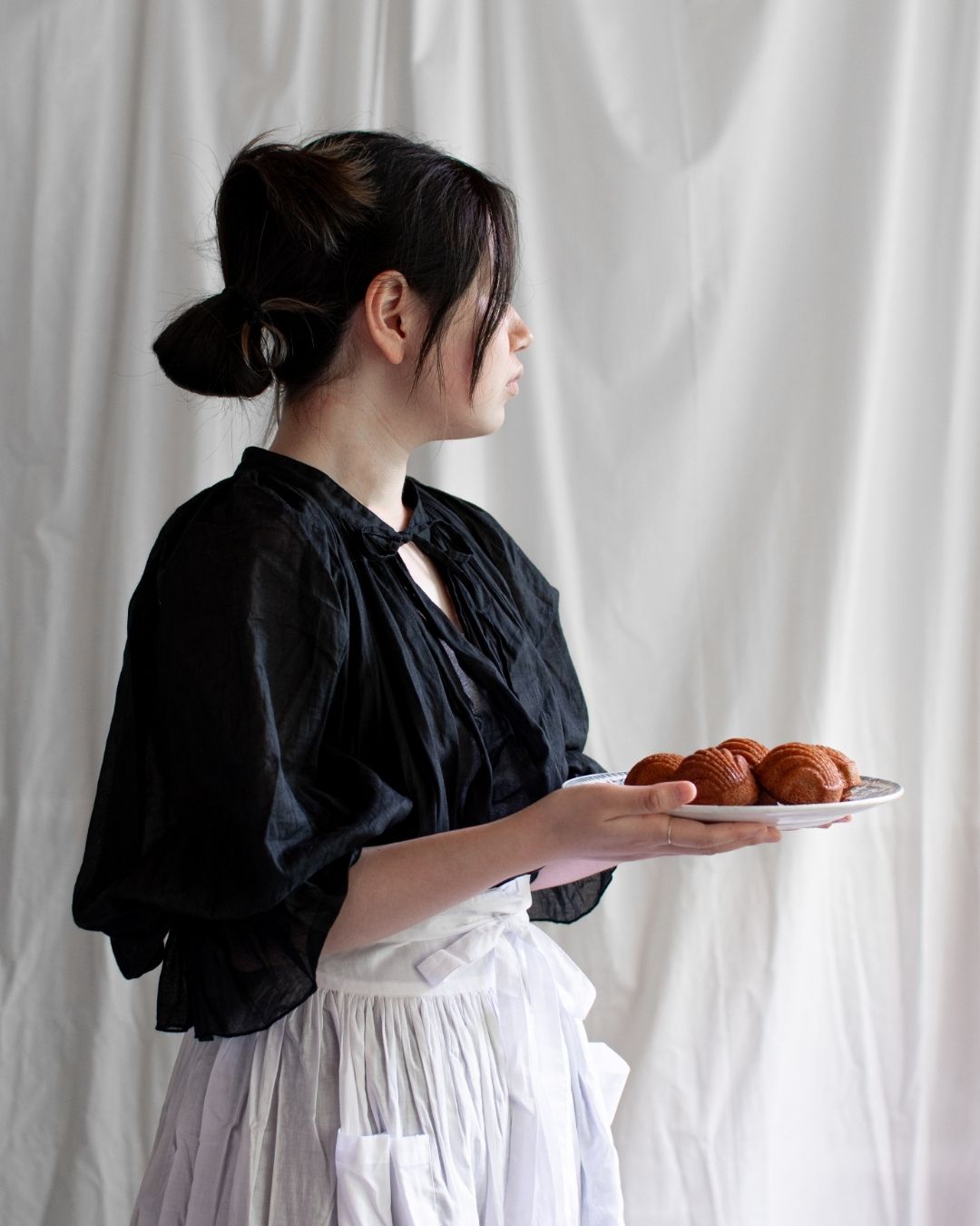 チャーチドレスからインスパイアされた上品なブラウス。スキッパーネックがデコルテを美しく見せ、繊細なギャザーが女性らしさを引き立てます。たっぷりとした分量感がありながら軽やかで、リラクシーなシルエットは今季のトレンドにぴったり。薄手で肌触りの良いコットン素材を使用しており、デイリーにも特別な日にも活躍します。短めに仕立てた袖は実用性があり、首周りのラインを調整して、スタイリングを自在に楽しめます。