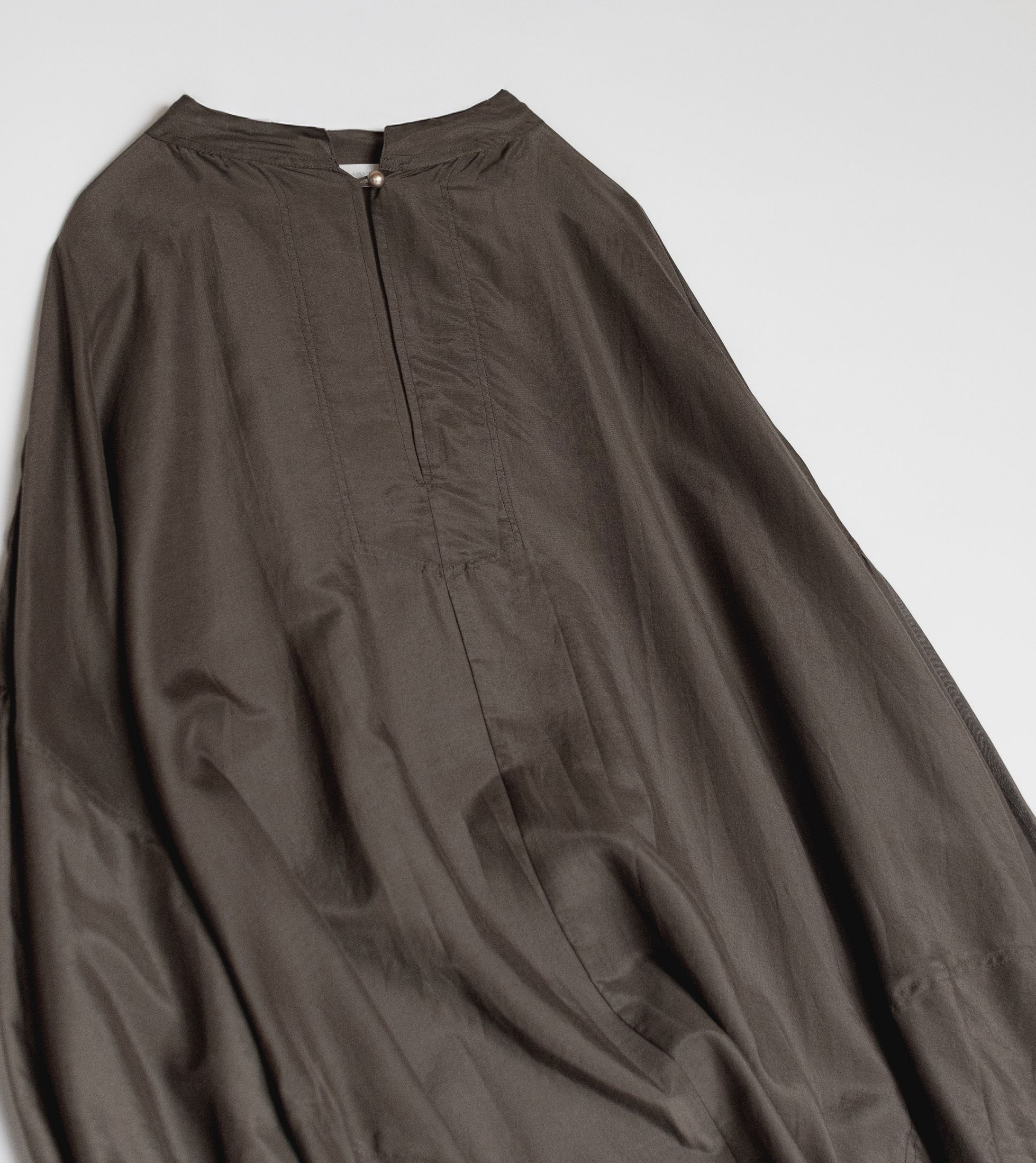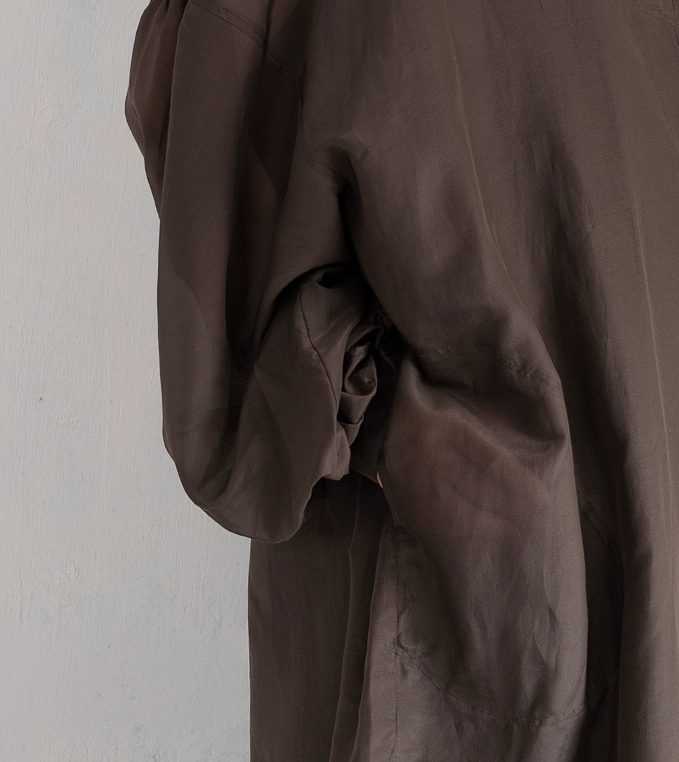 薄手でしなやかな生地が、身体の動きに沿って柔らかな陰影を描き出します。